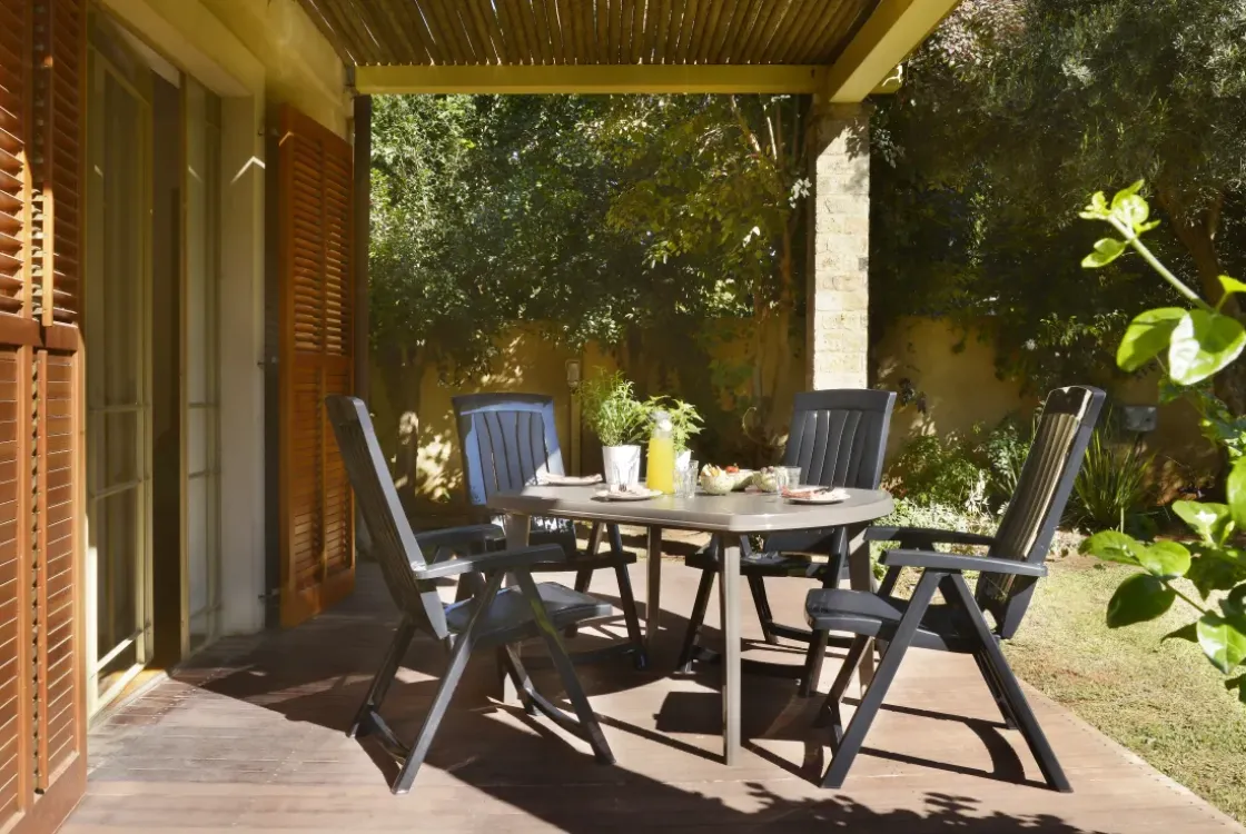 Compacte Ovale Tafel Van Jardin Met Subtiel Afgewerkte Poten, Die Eenvoudig Te Verwijderen Zijn Voor Ruimtebesparende Opslag. Biedt Plek Aan 4 Personen.