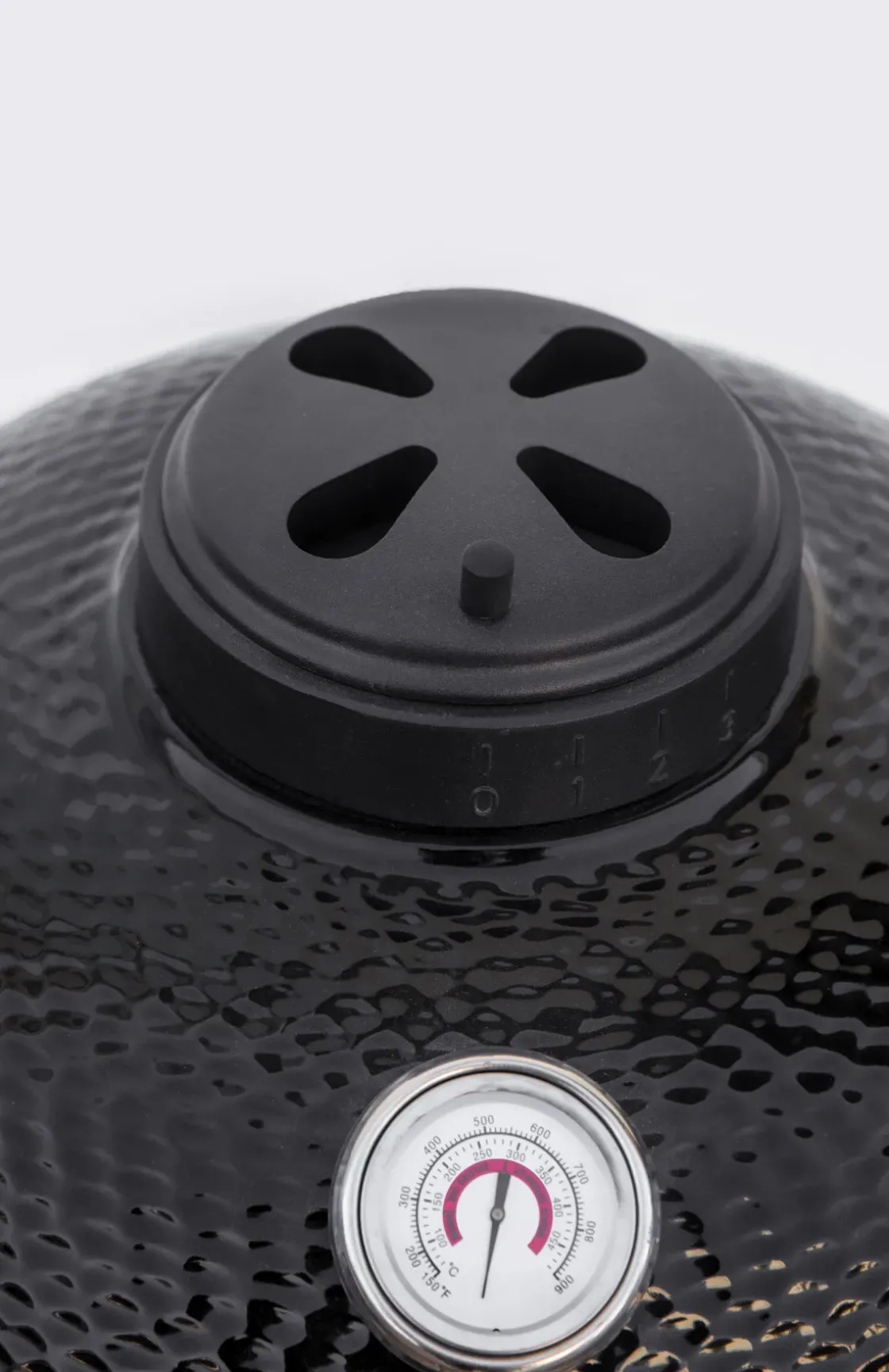 Daarnaast Is De Kamado Voorzien Van Een Thermometer In De Deksel. Dit Maakt Het Mogelijk Om De Interne Temperatuur Van De Barbecue Te Meten, Zodat Je Altijd De Juiste Instellingen Kunt Kiezen Voor Het Gerecht Dat Je Wilt Bereiden.
