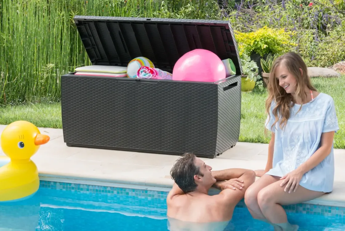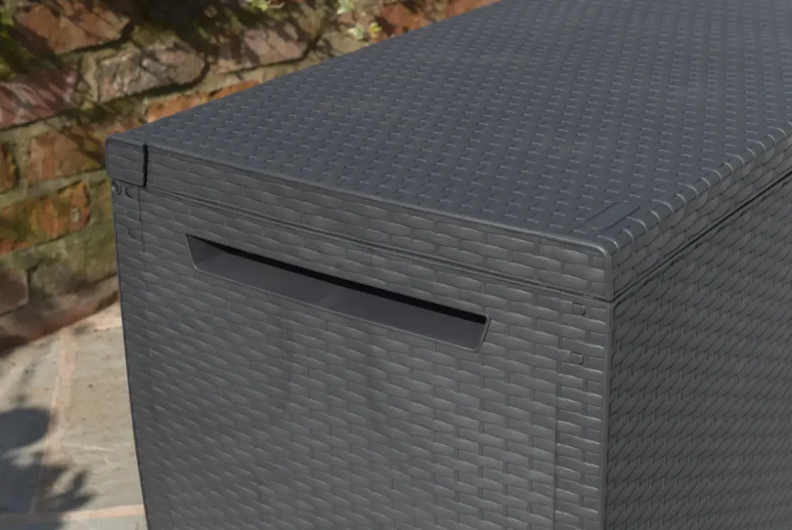 De Tuinkussen Opbergbox Capri Van Keter Met Wickerdesign Is Uitermate Geschikt Voor Je Tuin. Dankzij Het Volume Van 305 Liter Kan Je Met Gemak Je Tuinkussens, Speelgoed Of Andere Spullen Opbergen. De Box Met Modern Rattan Design Is Eenvoudig En Zonder Gereedschap In Elkaar Te Zetten. De Opbergbox Is Vervaardigd Uit Hoogwaardig Kunststof Waardoor Hij Niet Zal Gaan Rotten Of Roesten En Dus Nauwelijks Onderhoud Nodig Heeft. Bovendien Is Deze Opbergbox Weerbestendig.