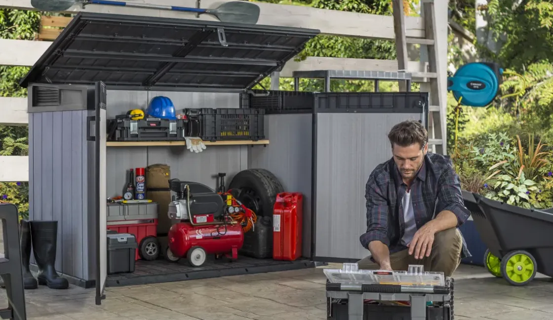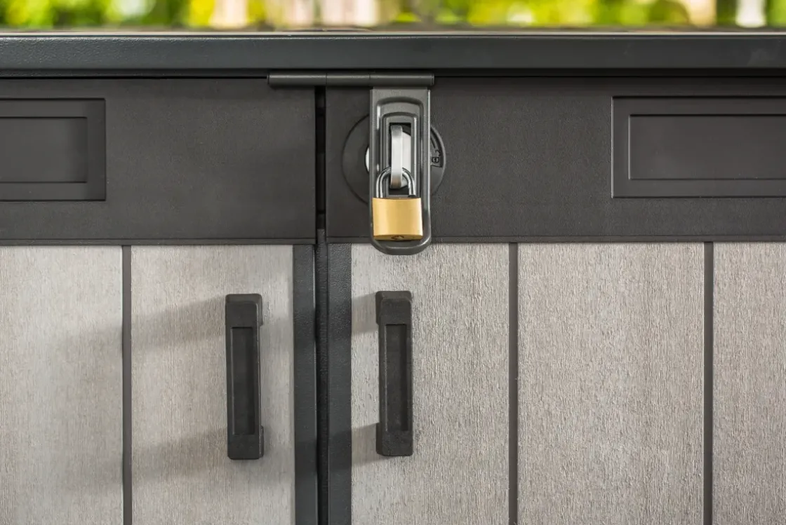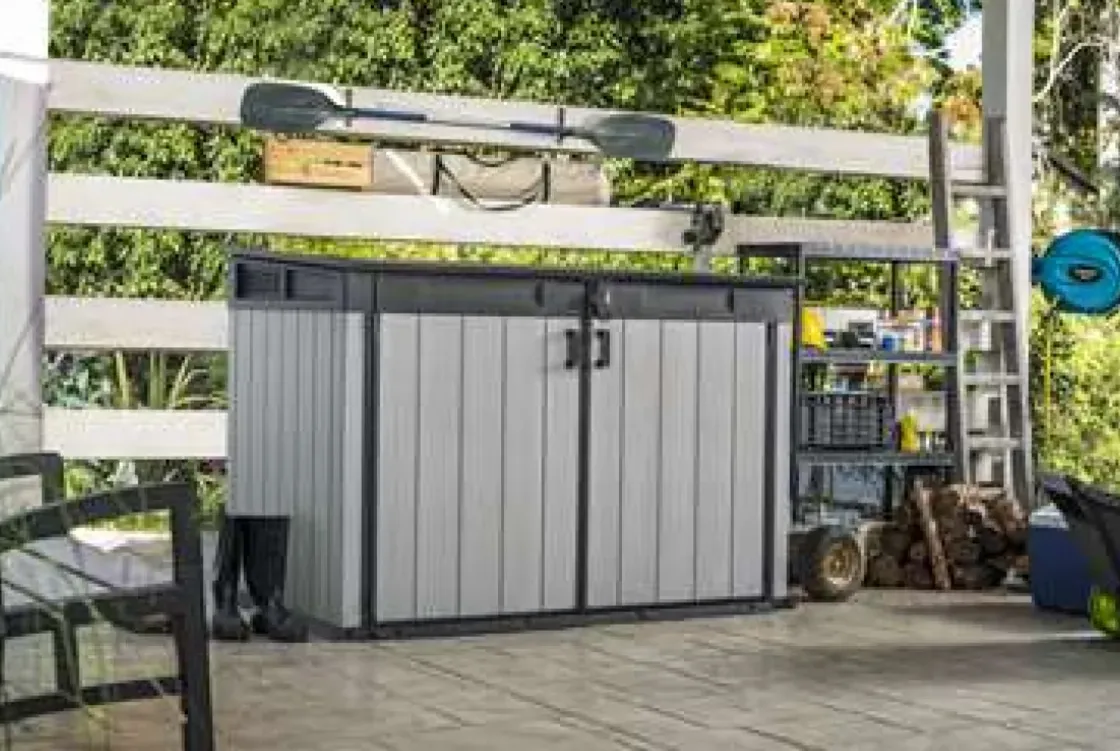 De Grande Store Van Keter Is Ideaal Voor Het Opbergen Van Al Jouw Tuinspullen. Dankzij Het Unieke Duotechâ„¢ Materiaal Heeft Deze Opbergbox De Uitstraling Van Echt Hout En De Voordelen Van Kunststof: Onderhoudsvrij En Weerbestendig. De Breed Openslaande Deuren, Het Deksel Met Gasveren En De Hellende Drempel Geven Eenvoudige Toegang Tot De Berging. Je Kunt Deze Box Naar Wens Aanpassen Door Eenvoudig Planken Te Monteren Of De Wanden Over Te Schilderen. De Berging Is Ideaal Voor Het Opbergen Van Bijvoorbeeld Twee X 360 Liter Containers Of Drie X 240 Liter Containers. De Deuren Zijn Afsluitbaar Met Een Slot Voor Extra Veiligheid (Apart Verkrijgbaar).