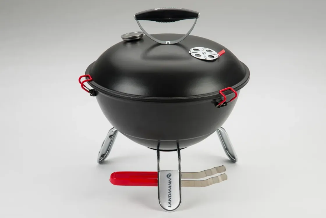 Deze Piccolino Male Van Landmann Is Een Zwarte Compacte Houtskoolbarbecue Met Een Grilloppervlak Van 34 Cm. Hij Beschikt Over Een Geemailleerd Deksel En Ketel, Verchroomd Grillrooster, Verchroomd Onderstel, Verchroomd Warmhoudrooster, Ventilatieopening In Het Deksel En Met Rubber Beklede Dekselklemmen Voor Een Veilig Transport. De Piccolino Wordt Met De Roestvrijstalen Grilltang Geleverd.