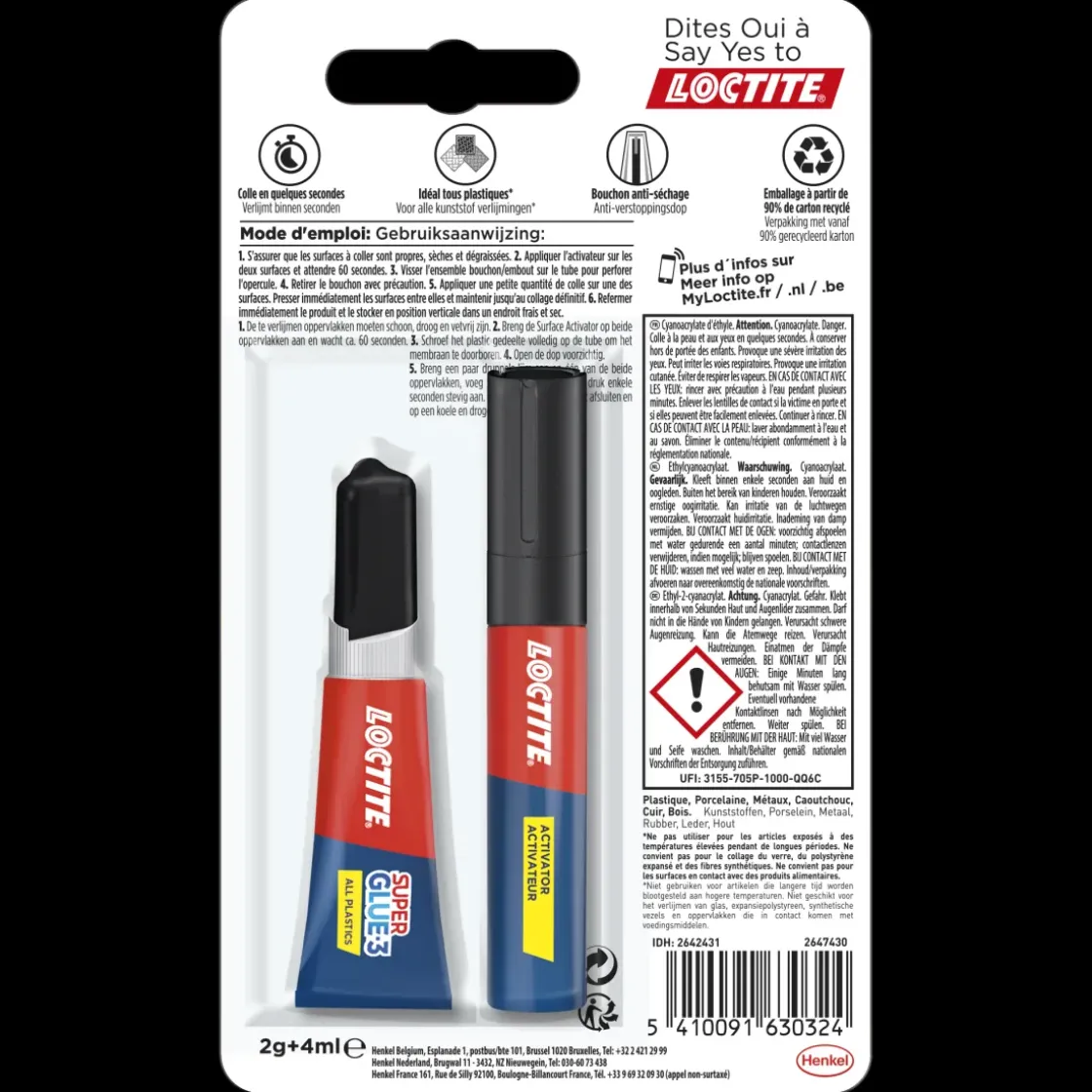 Loctite Super Glue-3 All Plastics Instant Adhesive 2Gr+4Ml Is Een Speciaal Ontworpen Tweeledige Snellijm Voor Alle Soorten Kunststof, Voor Een Onzichtbare En Duurzame Hechting In Enkele Seconden. Verlijmt Zelfs Moeilijk Te Verlijmen Kunststoffen Zoals Polyethyleen (Pe) En Polypropyleen (Pp).