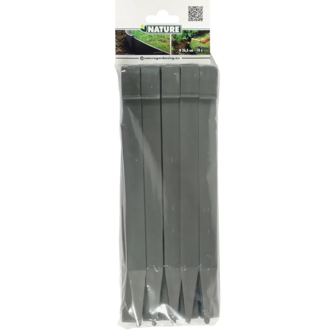 Nature Grondpennen Voor Tuinborder Polyethyleen Grijs 1,9X1,8X26,7Cm 10 Stuks-Brico