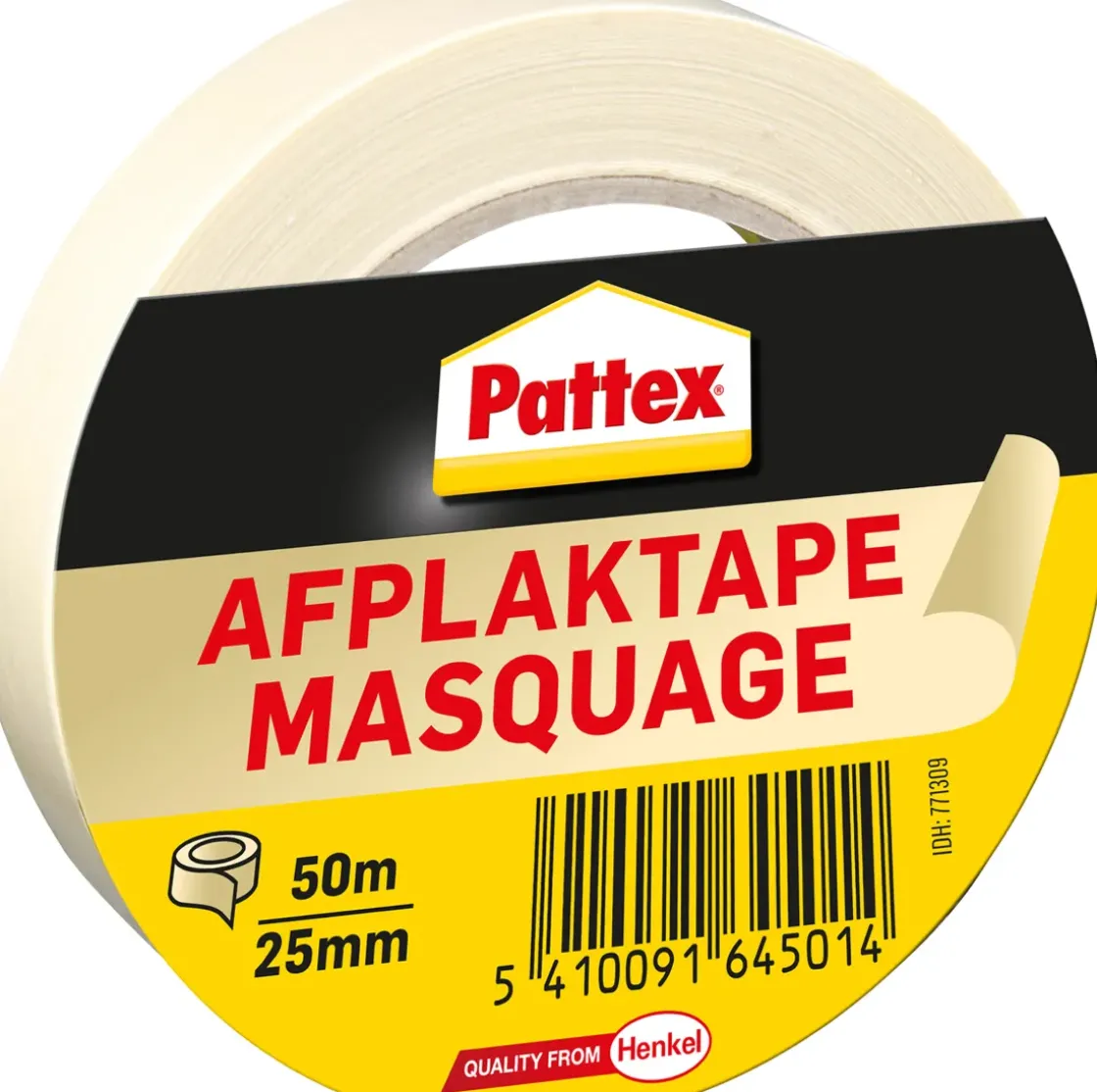 Pattex Afplaktape 25Mmx50M Is Een Standaard Afplaktape Voor Een Snelle Klus. De Tape Is Geschikt Voor Alle Soorten Verf En Oppervlakken. Het Is Enkele Uren Verwijderbaar.