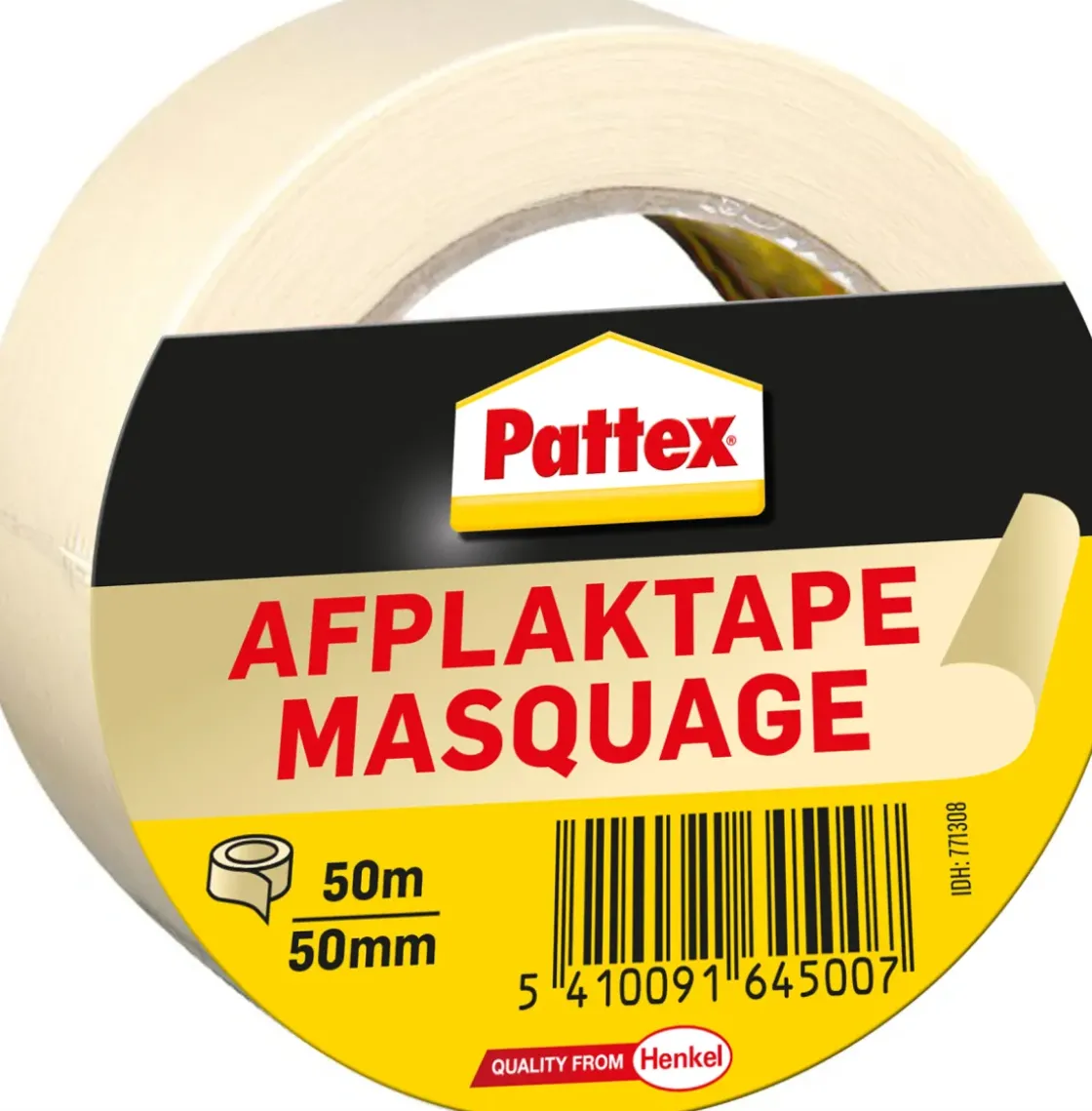 Pattex Masking Tape 50Mmx50M Is Een Standaard Afplaktape Voor Een Snelle Klus. De Tape Is Geschikt Voor Alle Soorten Verf En Oppervlakken. Het Is Enkele Uren Verwijderbaar.