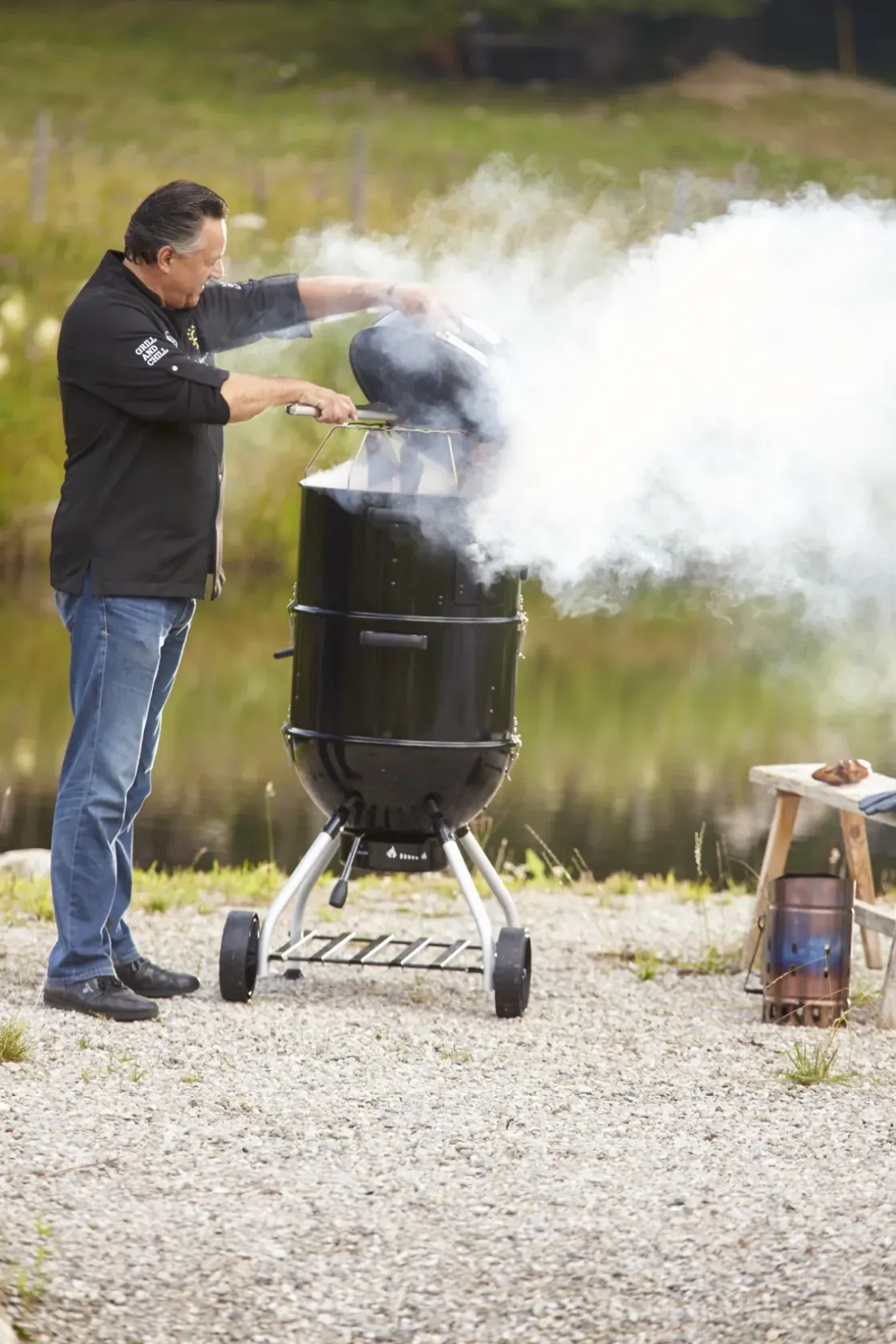 Rook Of Grill Heerlijke Gerechten In De Rosle Smoker No.1 F50-S. De Rookoven Heeft Twee Kookoppervlakken Van O 50 Centimeter, Zodat Je Voor Grote Groepen Eten Kan Bereiden. Het Onderstel Met Wielen Zorgt Voor Een Prettige Werkhoogte En Eenvoudig Verplaatsen! Met De Rosle Smoker No.1 F50-S Rook Of Grill Je De Lekkerste Gerechten. Plaats Rookhout Of Rooksnippers Onderin De Ketel En Vervolgens De Gerechten Op Een Van De Twee Kookoppervlakken. Met Deze Eeuwenoude Bereidingswijze Trekt De Smaak Diep In De Gerechten En Beleef Je Een Unieke Smaaksensatie.