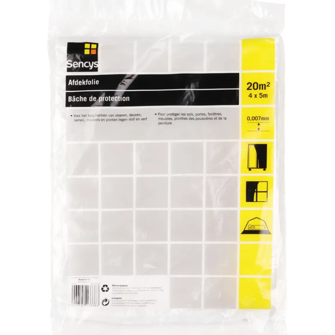 Sencys Afdekfolie Van 4 Bij 5 Meter Heeft Een Dikte Van 0,007 Millimeter. De Afdekfolie Is Geschikt Voor Het Beschermen Van Ramen, Meubels En Vloeren Tegen Stof, Verf En Dergelijke.