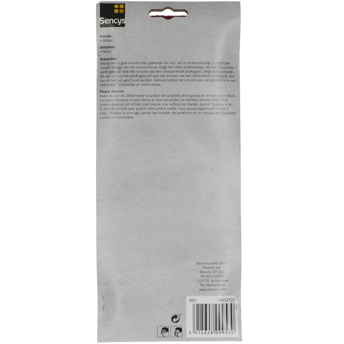 Reinig Het Oppervlak Voor Het Schuren Van Vuil, Vet Of Andere Afzettingen. Je Hebt Dan Minder Slijtage Aan Het Schuurvlies En Krijgt Een Beter Eindresultaat. Als Het Schuurvlies Wordt Gebruikt Om Een Onbehandeld Oppervlak Te Schuren, Altijd Droog Schuren. Als Het Schuurvlies Wordt Gebruikt Om Een Behandeld Oppervlak Te Schuren, Kan Het Ook Nat Worden Geschuurd. Gebruik Een Veiligheidsbril En Een Stofmasker Bij Het Schuren. Wasbaar En Herbruikbaar.