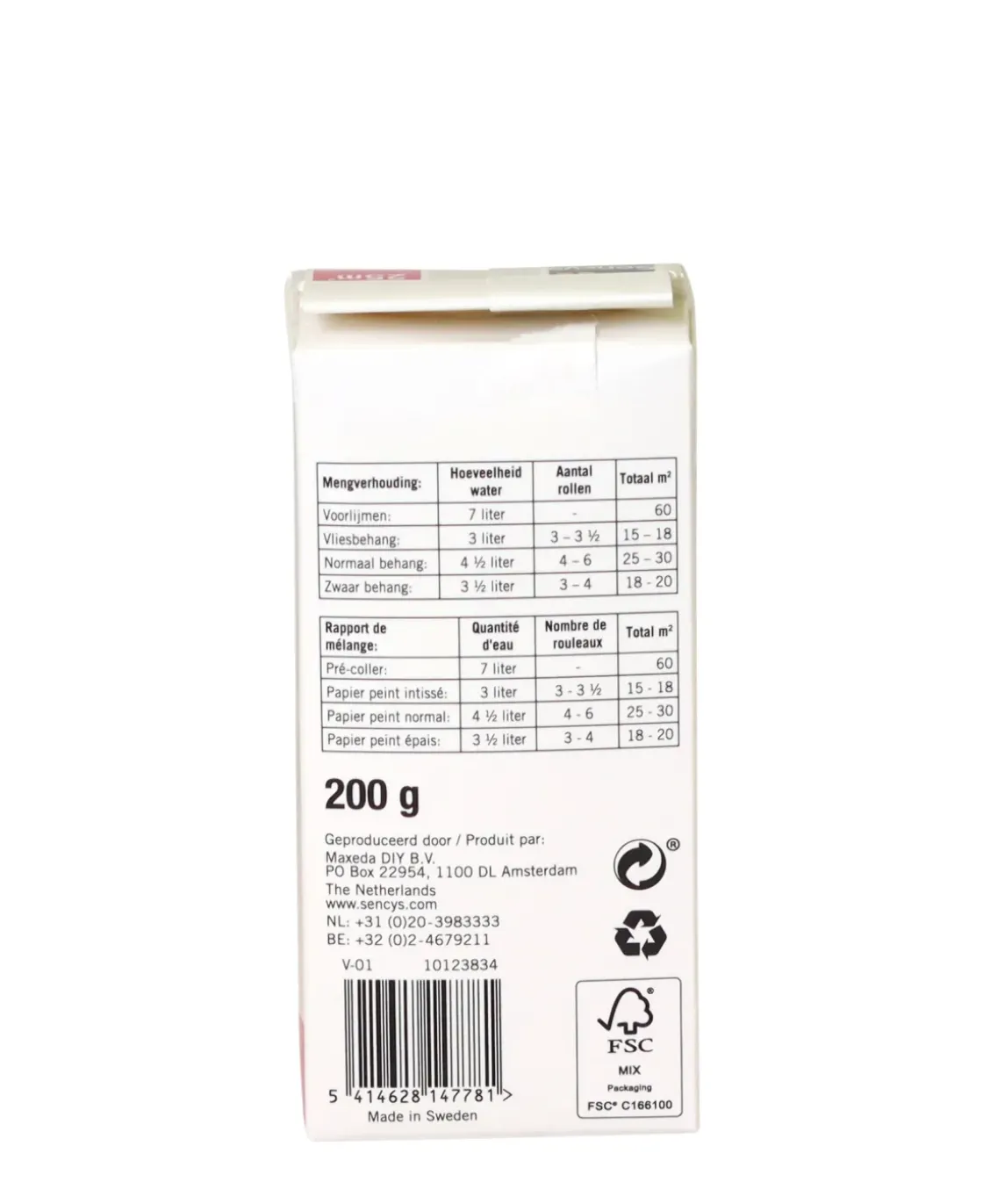 Sencys Vliesbehanglijm 200Gr In Poedervorm Is Ideaal Voor Het Bedekken Van Een Oppervlakte Van 25M².Vliesbehanglijm