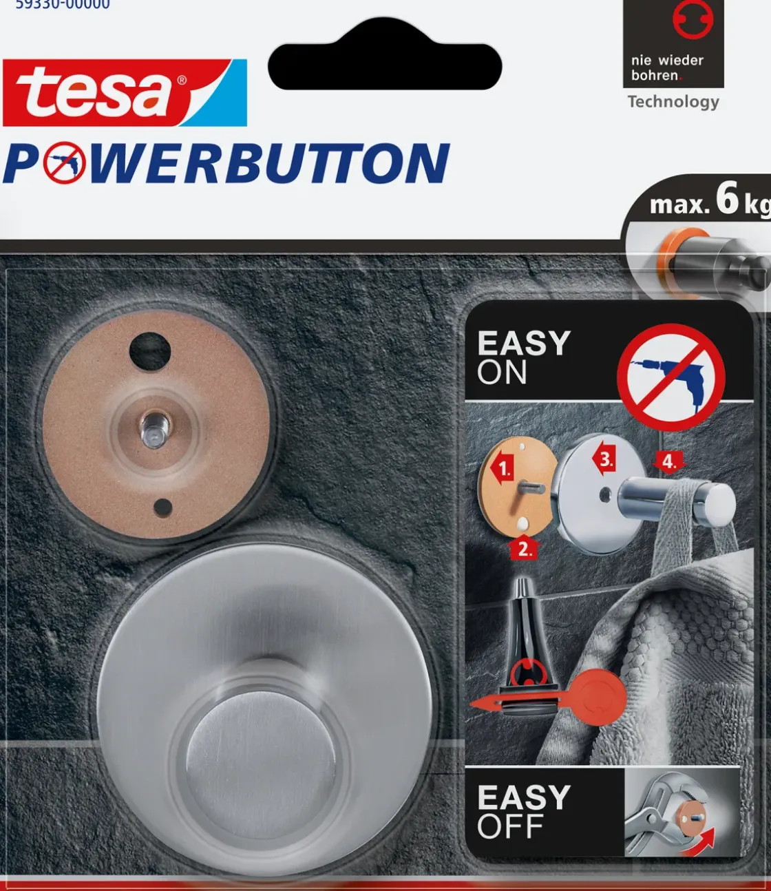 Tesa Powerbutton Haak Rond Glanzend Mat Chroom 6Kg-Brico Sale