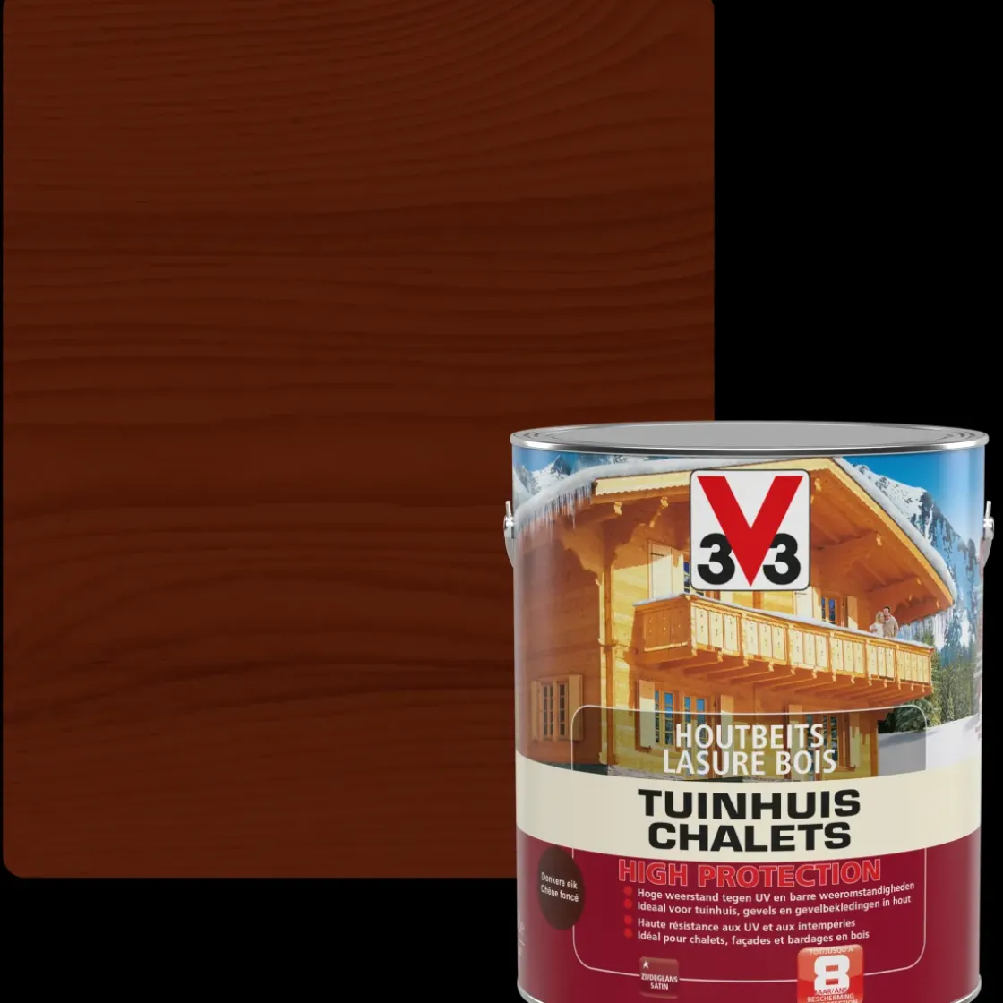 V33 Houtbeits Tuinhuis High Protection Donkere Eik Zijdeglans 2,5L-Brico Best