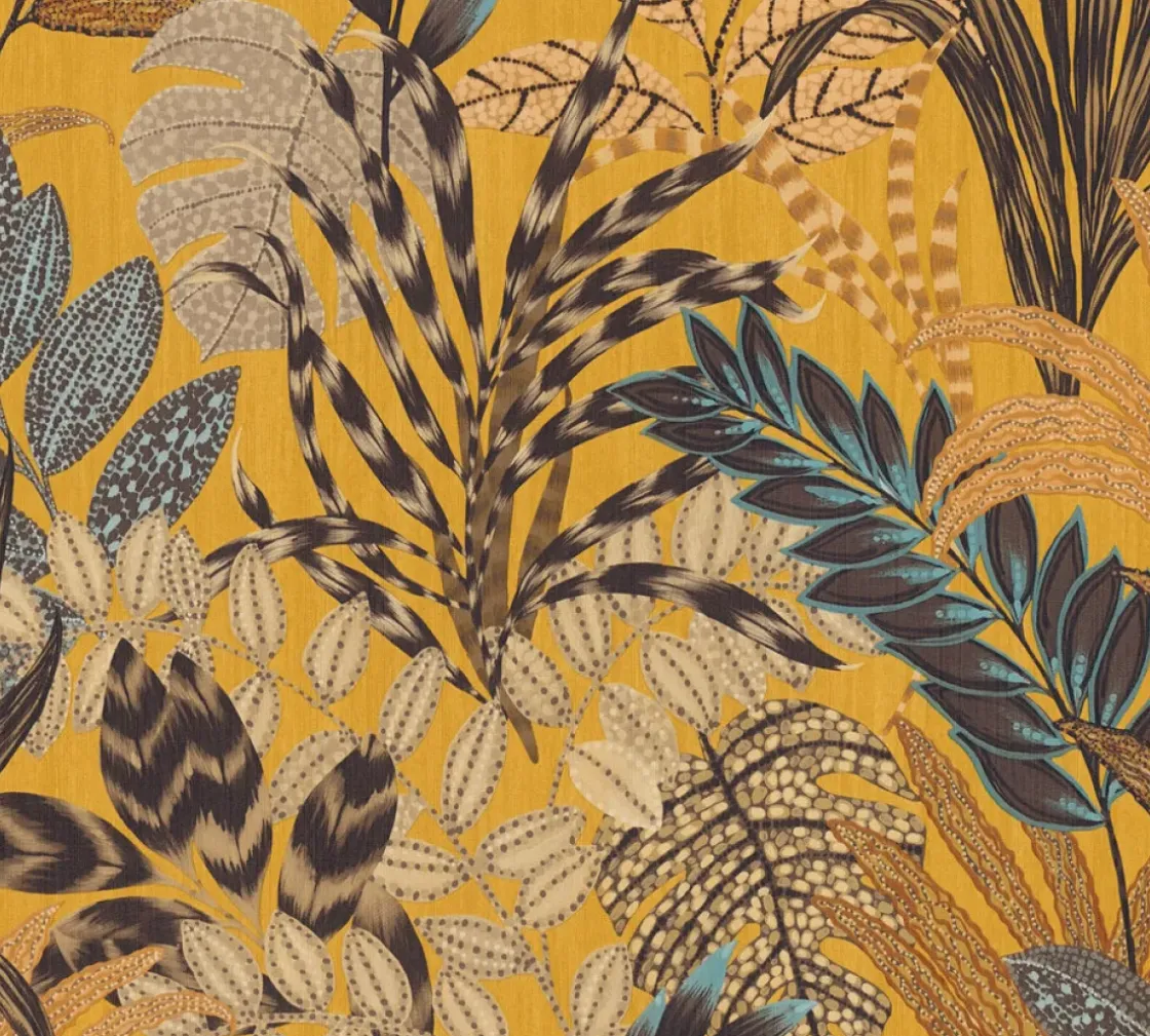 Het Vinylbehang Jasmin Geel Creeert De Illusie Van Een Prachtig Blader Decor Op Een Gele Ondergrond. Dit Behang Is Dus Ideaal Als Je Je Kamer Een Unieke Uitstraling Wil Geven.